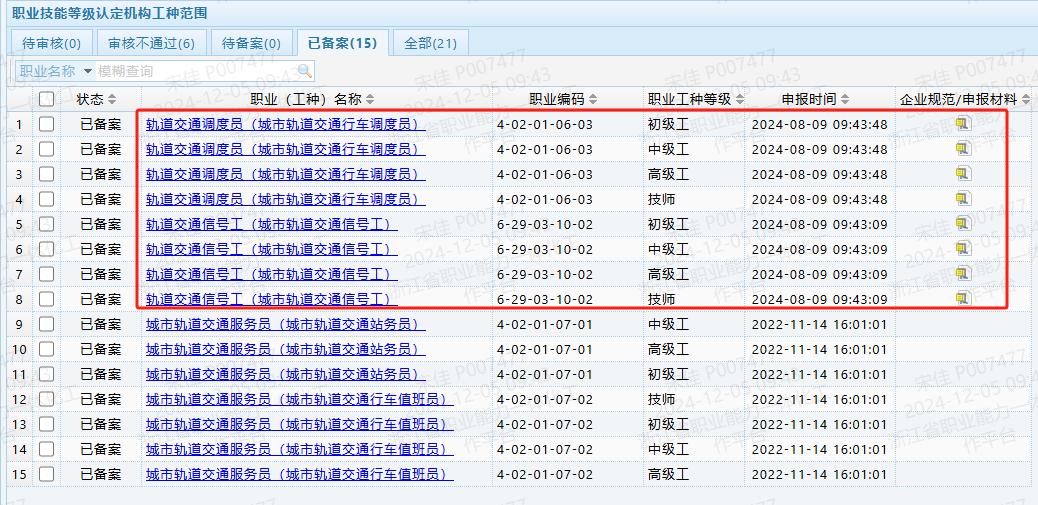 截至目前,市軌道交通集團(tuán)運(yùn)營公司職業(yè)技能等級認(rèn)定評價(jià)范圍如下: